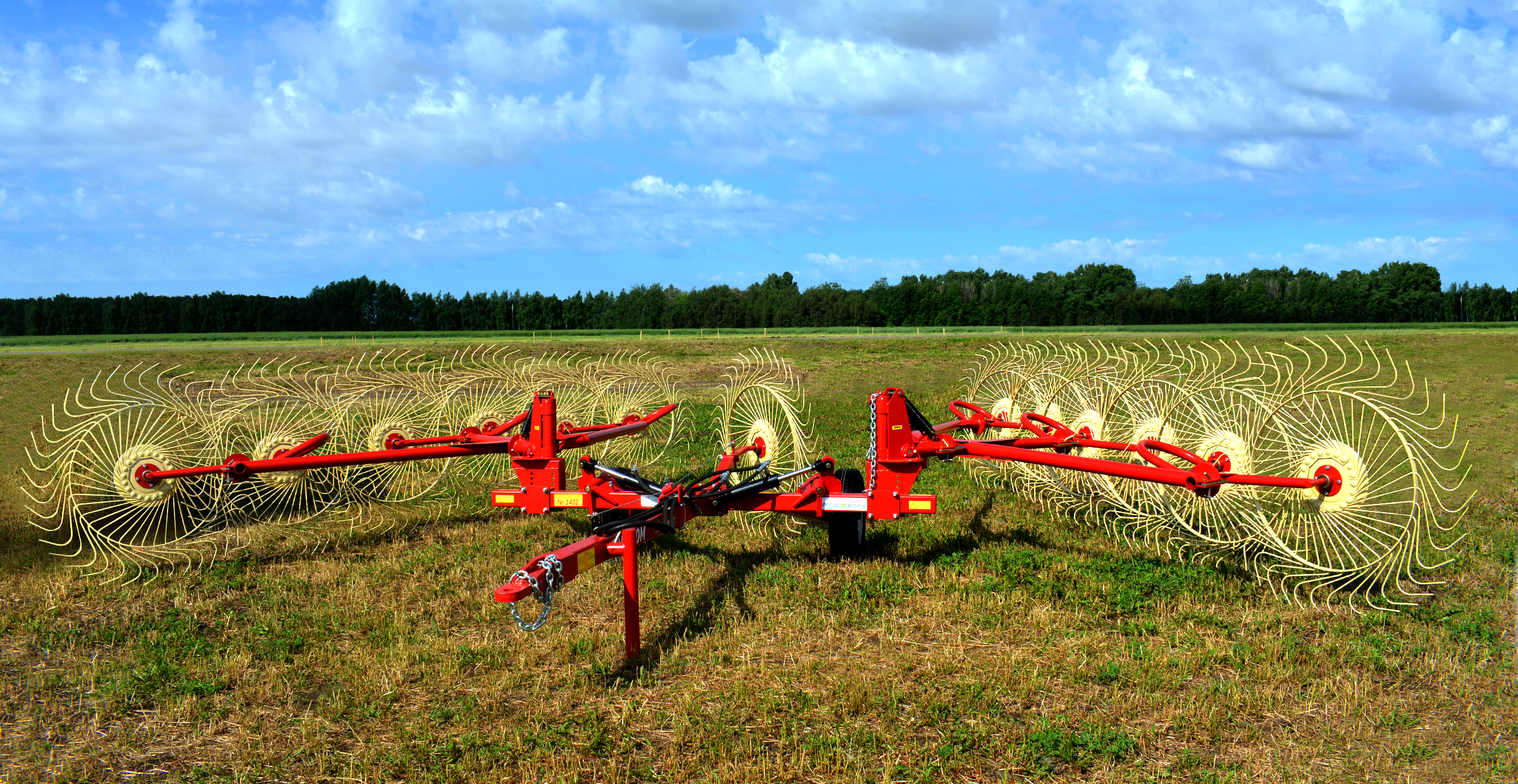 Грабли легко переводятся в рабочее положение и складываются в транспортное положение с помощью гидросистемы трактора;